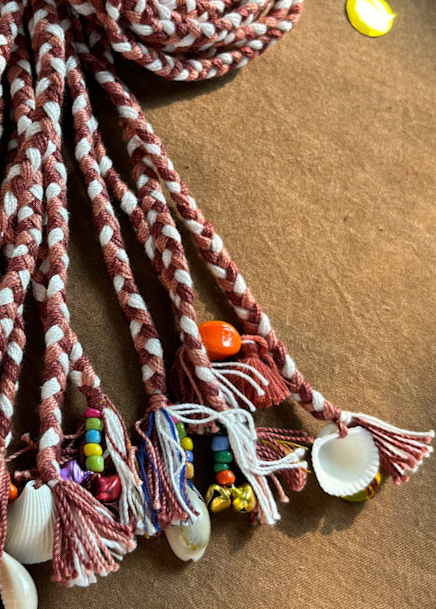 Add a touch of grounded grace to your festive look with this beautifully braided brown and white hair tuft. Designed with handcrafted white tassels, cowrie shells, wooden birds, and multicolor beads, this accessory strikes the perfect balance between subtlety and tradition. Ideal for those who prefer a more muted palette, it complements both bold and minimal festive outfits. Whether you’re dancing at a Garba night or heading to a cultural gathering, this tuft brings earthy sophistication to your style while keeping your hair beautifully adorned.