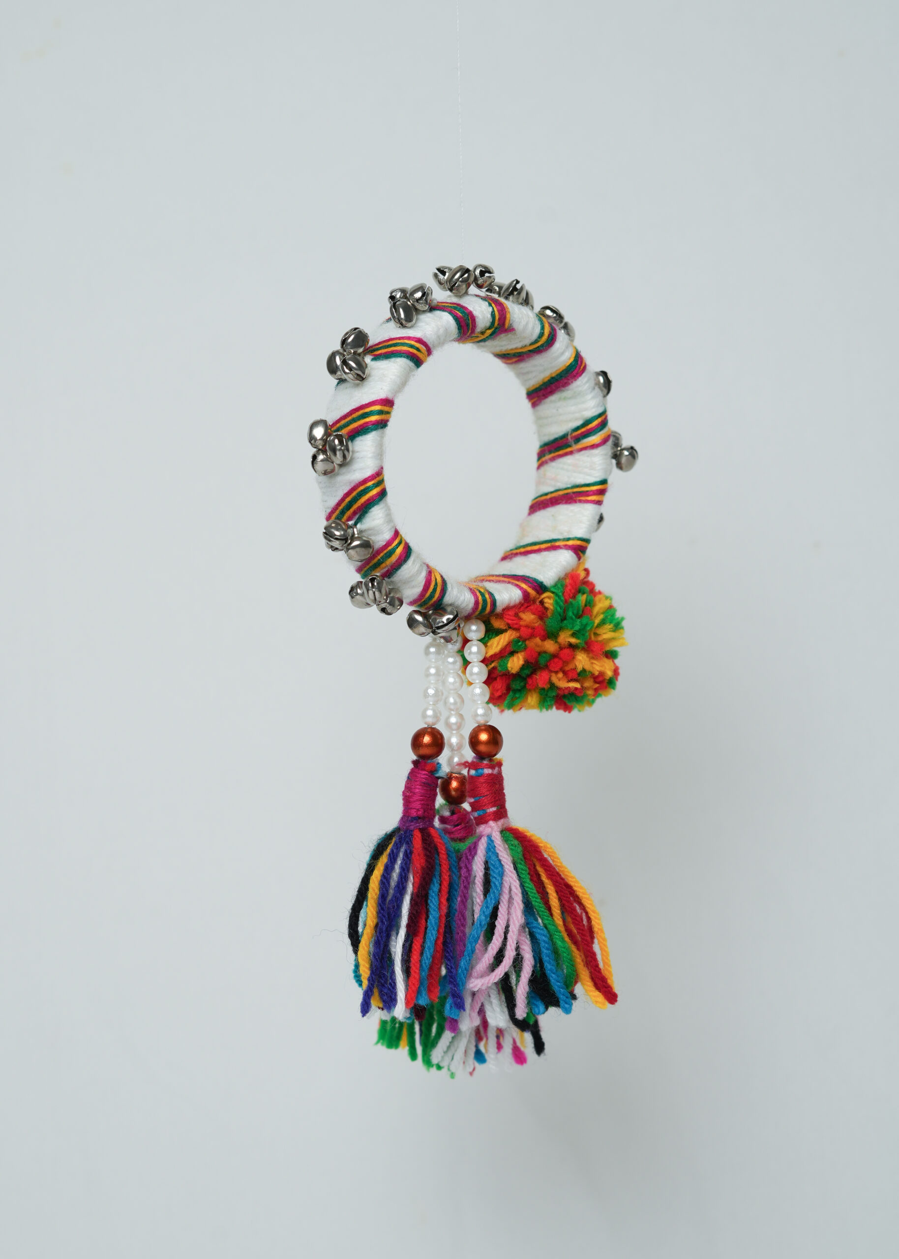 Handmade single bangle with ghungroos, pom-pom, beads, and colorful tassels — designed for sound, style, and Navratri celebration.