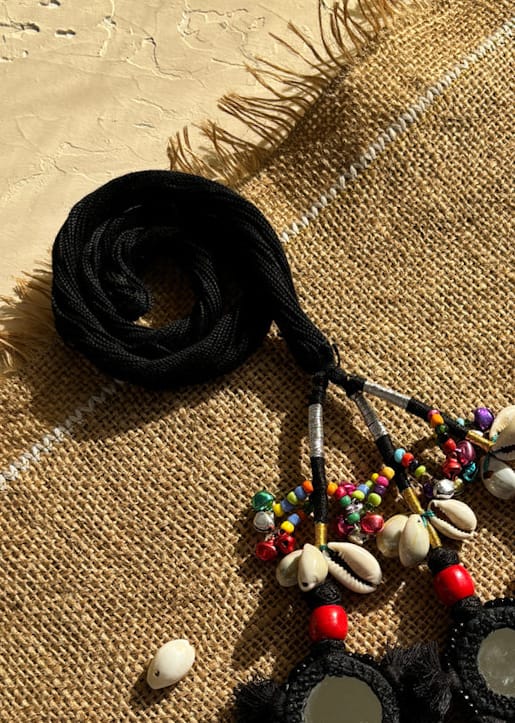 Celebrate Navratri in style with our handcrafted “RangRaasa” waist belt – featuring vibrant geometric embroidery and colorful bead detailing. A festive essential for Garba & Dandiya nights!