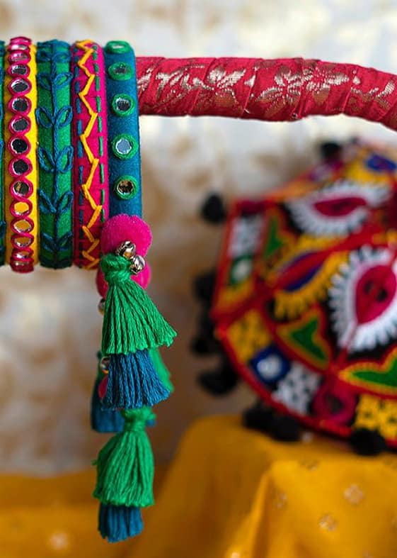 Handcrafted Rangtara Mirror Bangles with colorful threadwork, mirrors, and bead detailing — perfect for Navratri and festive occasions.